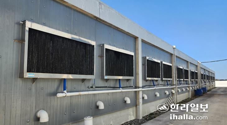 '기후 재난 대비 축산 사업장 안전 기반 구축 사업'으로 설치된 쿨링 패드. 제주시 제공