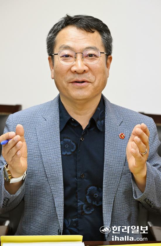 ▶송창권 제주특별자치도의회 의원(이하 송)=대한민국에서 가장 선도적으로 '2040 플라스틱 제로'를 선언하고 실천하겠다는 로드맵을 제시한 것은 평가할 만하다. 그런 만큼 어떻게 실천하느냐의 문제가 더 중요하다. 그런데 여건이 좋지 않다. 정부가 바뀌면서 이전 정부의 환경 정책들이 일관되지 못하고 휘청대는 듯하다. (제주도의 플라스틱 제로 섬이) 선언 형태로만 끝날 것은 아니기 때문에 실천에 초점을 맞춰야 한다.