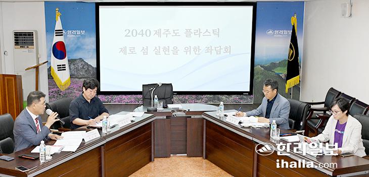 23일 한라일보 본사 회의실에서 '제주자치도 플라스틱 제로 섬 실현을 위한 좌담회'가 열리고 있다. 강희만기자