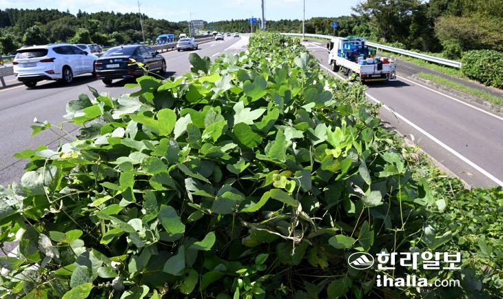 이렇다 보니 덩굴류 제거 작업이 확산 속도를 따라잡지 못하고 있다. 제주시는 올해 애조로, 중산간동·서로, 동백로 등 도로변을 중심으로 덩굴류 107ha를 제거했지만, 이내 줄기를 뻗는 덩굴로 인해 애를 먹고 있다. 도로와 맞붙은 임야 등 사유지에서 번지는 덩굴까진 손을 대지 못하는 데다 덩굴에 얽혀 있는 식생에 피해를 주지 않으려다 보니 제거 속도도 더딘 상황이다.