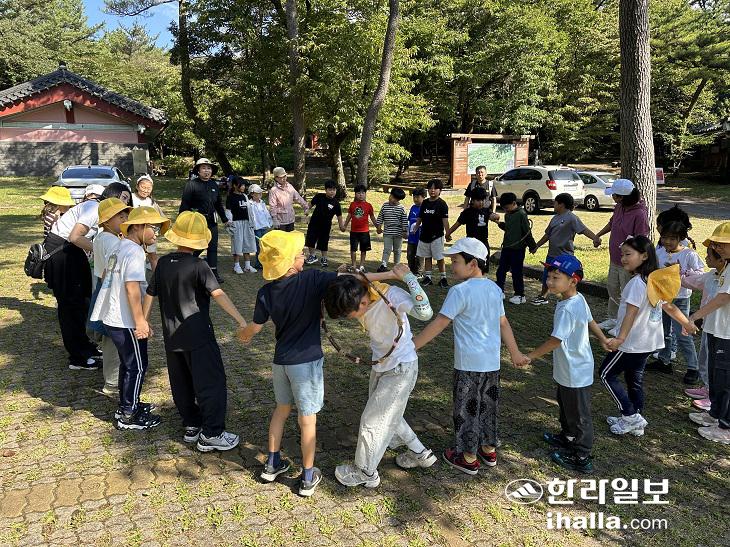 [한라일보] 시원한 바람과 따스한 햇살이 가을의 시작을 알렸다. '2024 제주특별자치도교육청과 한라일보가 함께하는 숲길체험 프로그램'의 두 번째 탐방이 지난달 29일 무오 법정사 항일운동 발상지 일대에 있는 한라산 둘레길에서 시작됐다. 이번 숲길 탐방은 예래초등학교 1·2·3학년 학생 30여 명과 함께 약 1시간의 코스로 진행됐다.