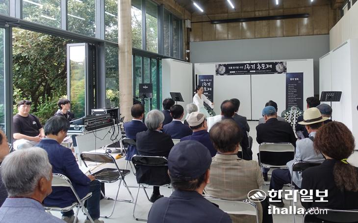 고인이 남긴 시를 낭송하는 동안 청중들은 시인이 살았던 그 마을의 풍경을 떠올리는 듯했다. 3일 서귀포칠십리시공원에 들어선 스페이스칠공. 이곳에서 한기팔(1937~2023) 시인 1주기 추모제가 열렸다.