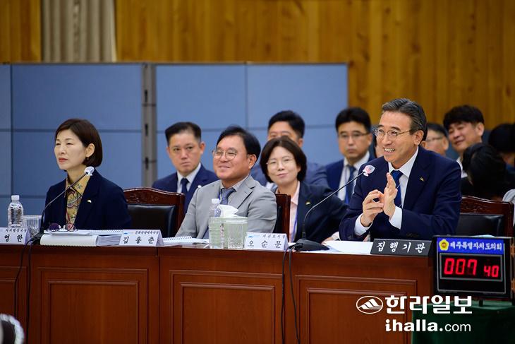 이와 함께 올해 역대 최대 규모로 서귀포시 일원에서 열리는 '트랜스 제주 국제트레일러닝 대회'에 대한 행·재정적 지원을 늘려야 한다는 의견도 이어졌다. 강연호 의원(국민의힘, 서귀포시 표선면)은 기존 조사 자료를 인용해 지난해 2박 3일 국제트레일러닝 대회의 경제적 파급 효과로 119억 원을 언급했고, 강철남 의원(더불어민주당, 제주시 연동을)은 스포츠를 활용한 도심 공동화 극복 사례 등을 제시하며 홍보 강화 등을 당부했다.
