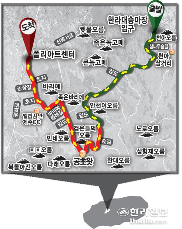 [한라일보] 폭우가 세차게 내리친다. 지독했던 여름날의 기나긴 무더위를 지워버릴 듯 아침부터 비가 쏟아진다. 기상청의 예보가 빗나가길 바라며 비옷과 튼튼한 등산화로 무장하고 집을 나섰다. 9월 중순에도 한낮 기온이 35℃를 넘는 기현상인 '가을 폭염'을 겪었다.