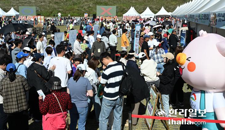 [한라일보] 13일 2024년 JEJU 도새기축제가 열린 제주시 애월읍 새별오름 주차장에 많은 도민과 관광객들이 찾아 즐거운 시간을 보내고 있다. 도새기 축제는 8년만에 다시 열렸다. 강희만기자