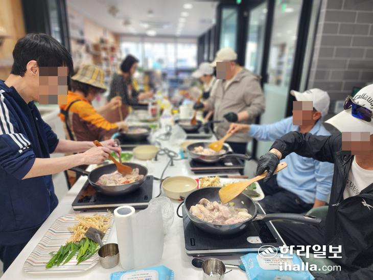 서귀포종합사회복지관이 '더불어 산다' 사업의 하나로 운영 중인 중장년 1인가구 요리 활동.