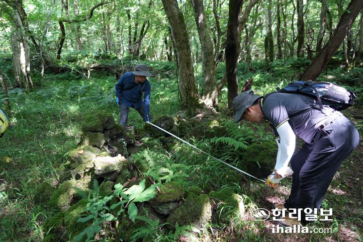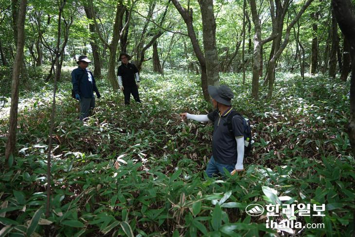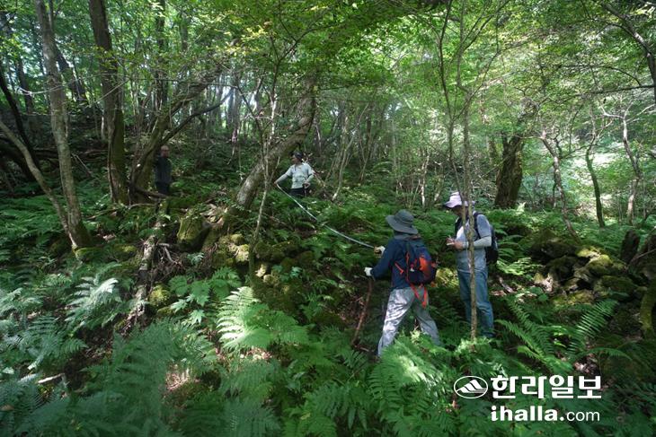 북받친밧(이덕구 산전) 일대에서 조사하고 있다.