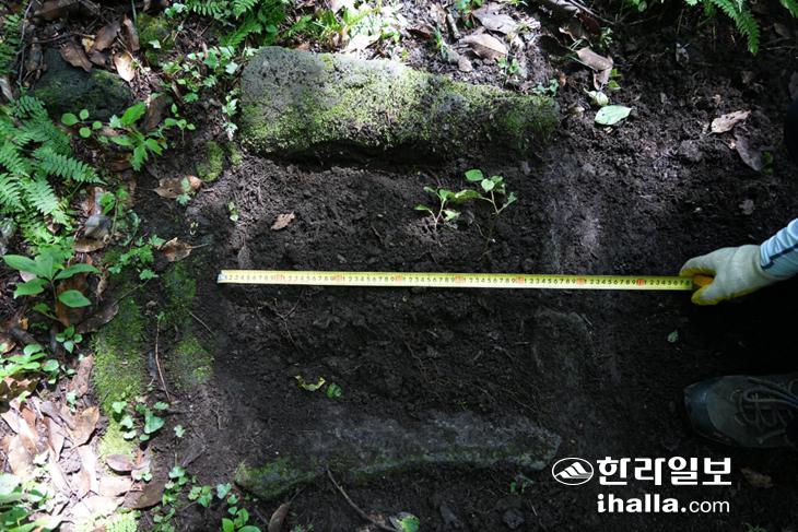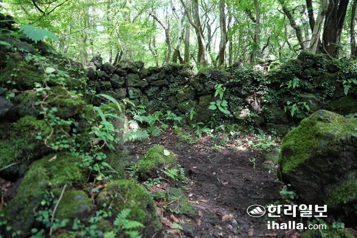 이곳 맞은편에는 비교적 너른 평탄지대가 있다. 원래 돌무더기가 많은 땅이었으나 경작을 위해 정리된 상태다. 면적은 대략 1000평 정도, 가운데는 돌을 치워 쌓아놓은 머들이 확인된다. 곶자왈 지대에 오무룩하고 평평한 곳을 골라 산전으로 이용했던 사례다.