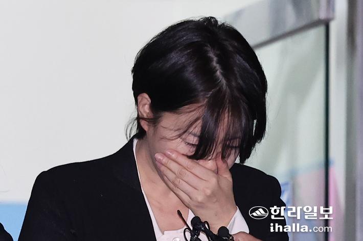 음주운전 사고를 일으킨 문재인 전 대통령의 딸 다혜 씨가 18일 오후 서울 용산경찰서에서 조사를 마친 뒤 건물을 빠져나가고 있다. 연합뉴스
