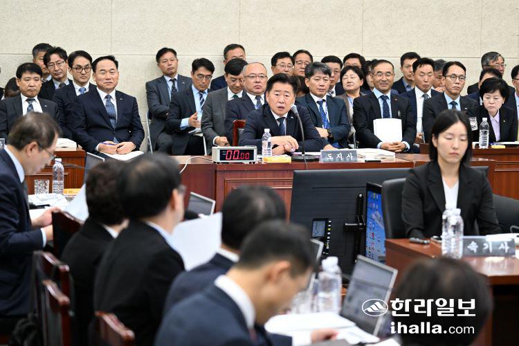 23일 국회 행정안전위원회 국정감사에서 답변하는 오영훈 제주지사. 강희만 기자