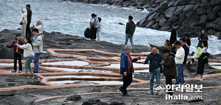 [한라일보] 28일 제주시 애월읍 구엄리 돌염전을 찾은 관광객들이 사진을 찍으며 즐거운 시간을 보내고 있다. 강희만기자