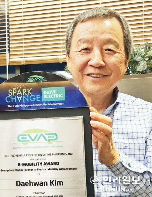 국제 e-모빌리티엑스포 조직위원장을 맡고 있는 김대환(사진) 세계전기차협의회(GEAN) 회장이 지난 24~26일 필리핀 마닐라 파사이시티 아시아몰 SMX 컨벤션센터에서 열린 필리핀 전기자동차 서밋에서 'e모빌리티 Award'를 받았다.