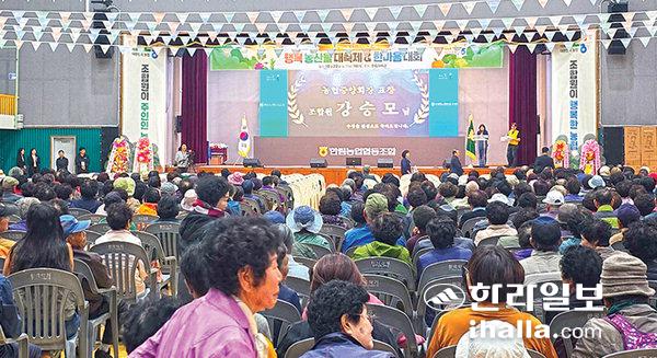 [한라일보]한림농협(조합장 차성준)은 지난 23일 한림체육관에서 조합원과 지역주민이 참석한 가운데 창립 55주년 기념 '행복 농산물 대축제 및 한마음대회'를 개최했다.
