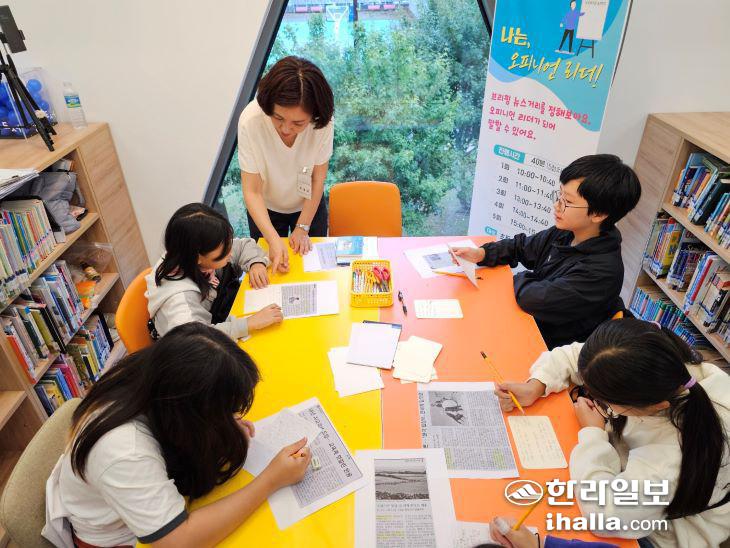 지난 2일 별이 내리는 숲 제주어린이도서관에서 '2024 JDC와 함께하는 미디어 체험데이'가 열렸다. 한라일보와 제주국제자유도시개발센터가 매해 이맘때쯤 진행하던 '생각을 춤추게하는 NIE 전시회'를 '미디어 체험데이'로 탈바꿈해 올해로 세 번째 선보이고 있는 행사다.