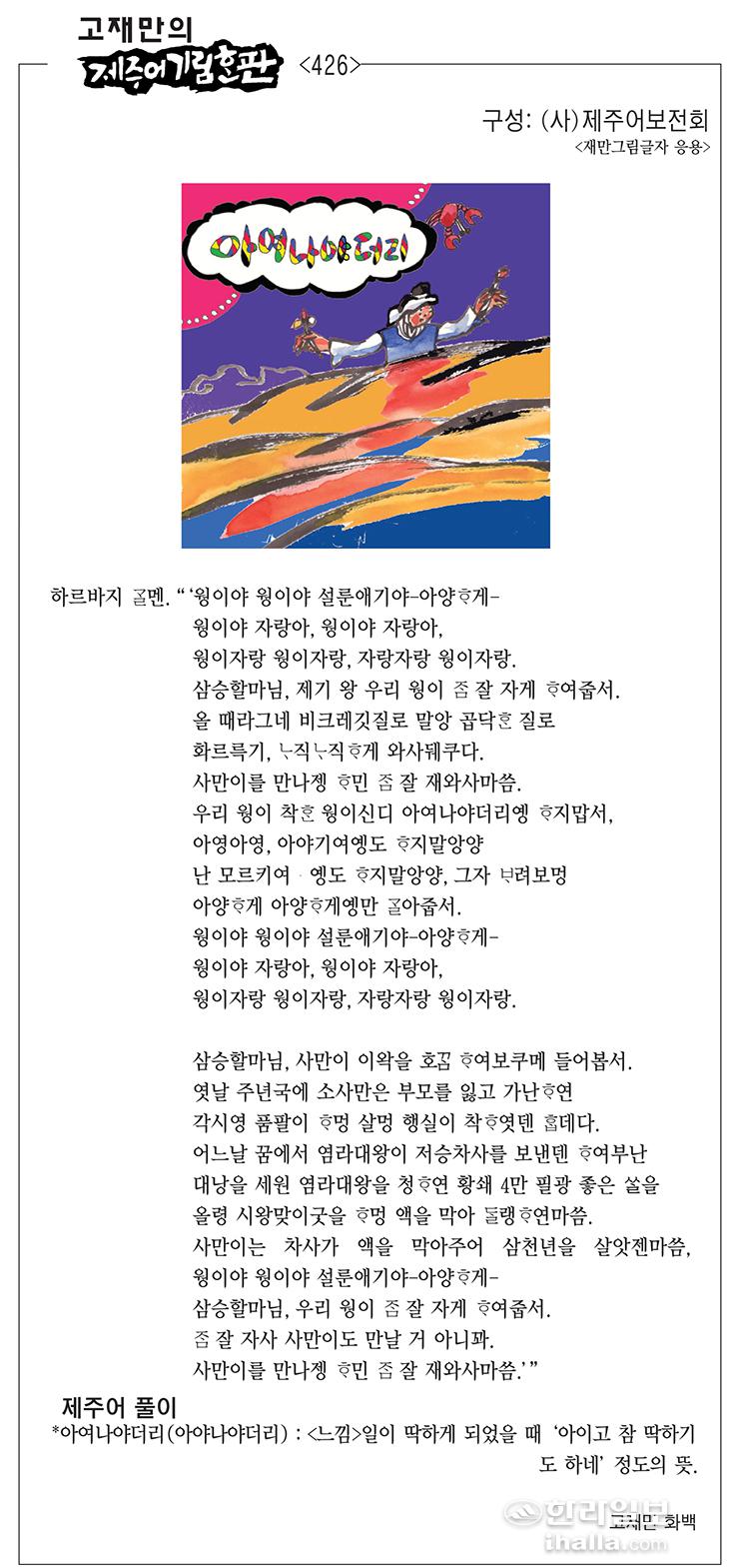 [고재만의 제주어 기림혼판] 제주어 풀이(426)