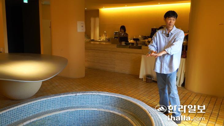 세월의 주름 같던 '낡음'은 사라졌지만, 건물 곳곳에선 온천탕의 기억을 마주할 수 있다. 건물 뼈대와 틀이 고스란히 남은 데다 바다를 닮은 푸른 타일의 둥그런 여탕과 옛 남탕과 연결됐던 환풍구, 목욕탕 물을 책임지던 물통까지 원형 그대로여서다. 개인 건물로는 유일하게 2021년 '서귀포 미래문화자산'(3호)에 지정된 것은 옛 기억을 지키겠다는 의지가 높이 평가 받은 일이었다.