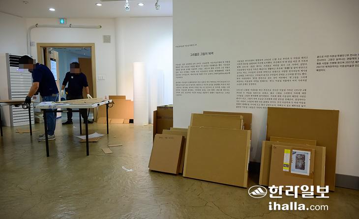 이중섭미술관 철거를 앞두고 소장품 포장 작업 등 전시실 내부를 정리하고 있다. 서귀포시 제공