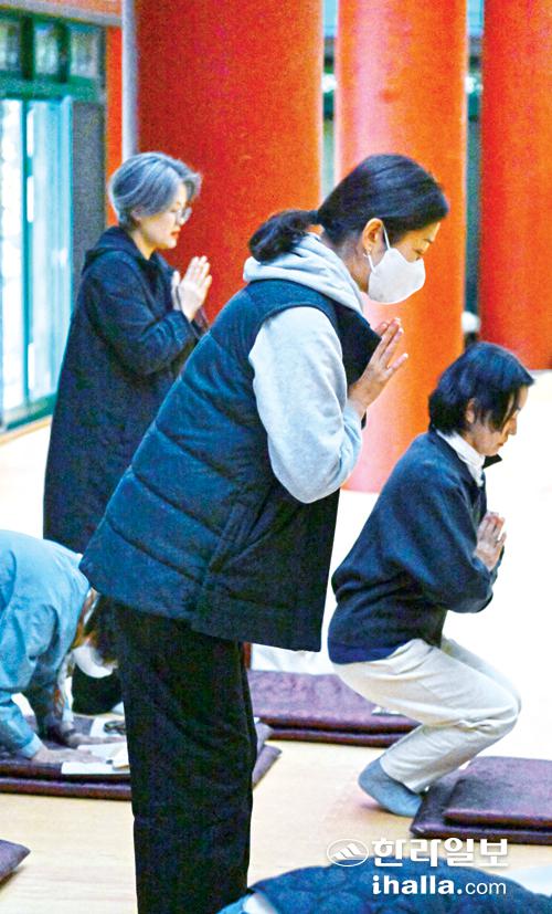 [한라일보] 2025학년도 대학수학능력시험을 일주일 앞둔 6일 제주시 천왕사에서 학부모들이 자녀들의 고득점을 기원하는 마음을 담아 기도를 하고 있다. 강희만기자