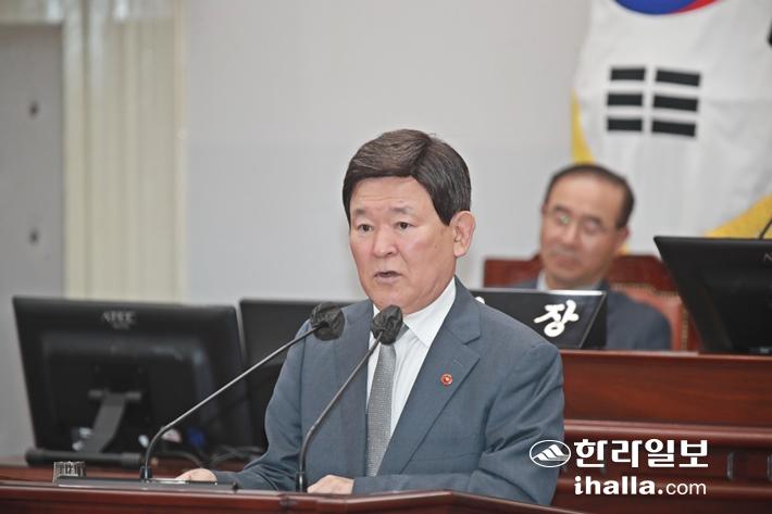 시정연설 하는 김광수 제주자치도교육감. 제주자치도의회 제공