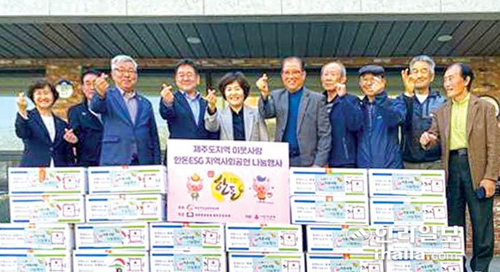 대한한돈협회 제주특별자치도협의회(회장 김재우)는 지난 14일 제주시 삼도1동(동장 송정심) 지역 내 5개 경로당에 이웃 사랑 한돈을 제주사회복지공동모금회(회장 강지언)를 통해 기탁했다.