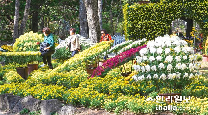 [한라일보] 19일 제주시 한림공원에 활짝 핀 형형색색의 국화꽃이 관람객들의 시선을 사로잡고 있다. 강희만기자