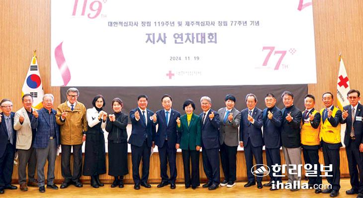 대한적십자사제주도지사(회장 정태근)는 지난 19일 제주혼디누림터에서 대한적십자사 창립 119주년 및 제주적십자사 창립 77주년 기념 연차대회를 열었다.
