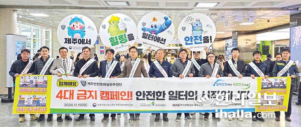 [한라일보] 고용노동부 광주지방고용노동청(청장 이성룡), 안전보건공단 제주지역본부(본부장 박상복), 한국공항공사 제주공항(공항장 김복근), 제주특별자치도개발공사(사장 백경훈)는 지난 19일 제주국제공항에서 기관 대표를 포함해 25여 명이 참석한 가운데 4개 기관이 합동 캠페인 및 안전점검을 실시했다.