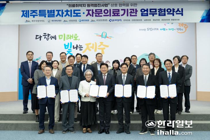 제주자치도가 지난 22일 도청 탐라홀에서 제주대학교병원, 서귀포의료원, 제주의료원, 제주권역재활병원 등 자문의료기관 11곳과 업무협약을 맺고 있다. 제주자치도 제공