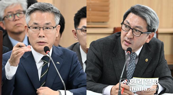 [한라일보] 제주특별자치도가 제주형 행정체제 개편을 위해 편성한 내년도 예산을 두고 또 다시 공방이 벌어졌다. 정부가 내년 6월말까지 주민투표를 요구하지 않으면 사실상 2026년 7월 '3개 기초자치단체'(동제주시·서제주시·서귀포시) 출범이 어려울 것으로 점쳐지면서 관련 용역에 투입되는 예산이 무용지물이 될 수 있다는 지적이 재차 나왔다.