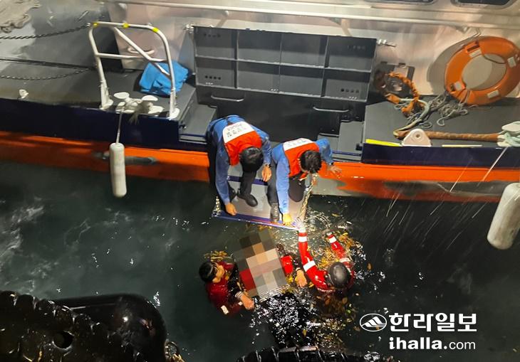서귀포항 해상 익수자 구조 장면. 서귀포해경 제공