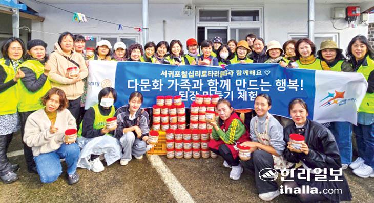 서귀포칠십리로타리클럽(회장 좌향순)은 26일 서귀포시 상예동 소재 영농조합법인 오성된장에서 '다문화 가족과 함께하는 된장 만들기 체험 행사'를 진행했다.