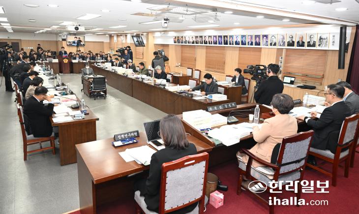 김황국 의원(국민의힘, 제주시 용담1·2동)도 "제주시 전체 예산이 5% 정도 감액됐는데, 읍면동은 13%나 감소했다"며 "행정의 최일선은 읍면동 아닌가. 각 지역구 의원들이 모자라는 부분을 메꾸라는 건가"라고 목소리를 높였다.