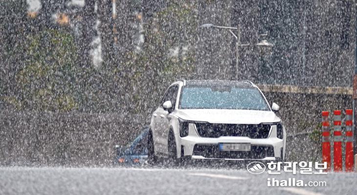[한라일보] 제주 산간에 많은 눈이 내린 28일 제주시 아라동에 콩알 정도 크기의 우박이 떨어졌다. 강희만기자