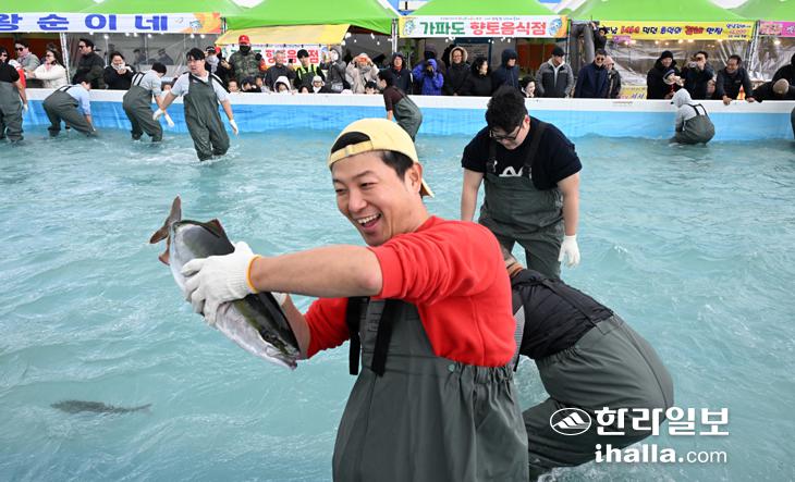 [한라일보] '제24회 최남단 방어축제'가 28일 개막해 12월 1일까지 나흘간 진행된다. 올해 축제는 '청정 바다의 흥과 멋과 맛의 향연'이라는 주제로 서귀포시 대정읍 모슬포항 일원에서 열린다. 이번 방어축제는 볼거리와 체험 프로그램으로 재미를 더했다. 대방어 해체쇼와 방어 먹방대회, 방어 맨손 잡기 등이 준비됐으며 해녀문화를 체험할 수 있는 해녀노래자랑, 테왁 만들기도 이어진다. 강희만기자