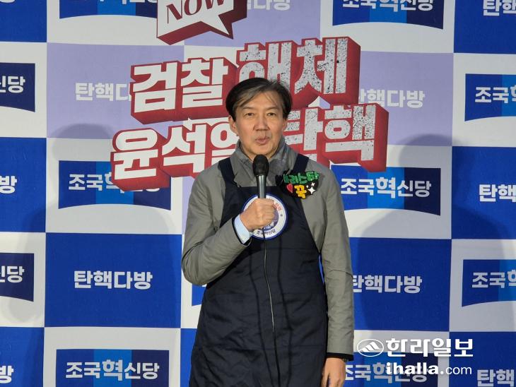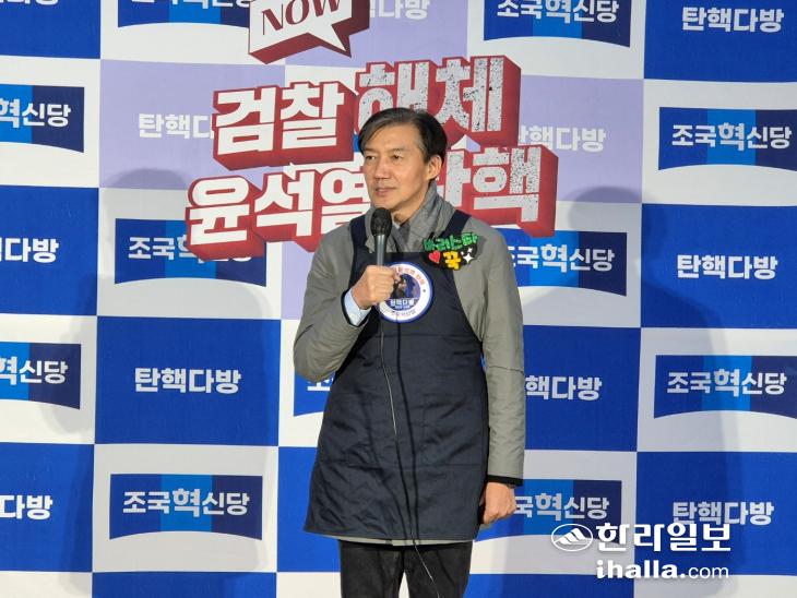 조국 대표는 이날 오후 조국혁신당이 제주시 탐라문화광장에서 개최한 정책설명회 '탄핵다방'에서 "나라가 이대로 가선 안 된다"며 대통령 탄핵에 힘을 실어줄 것을 강조했다.