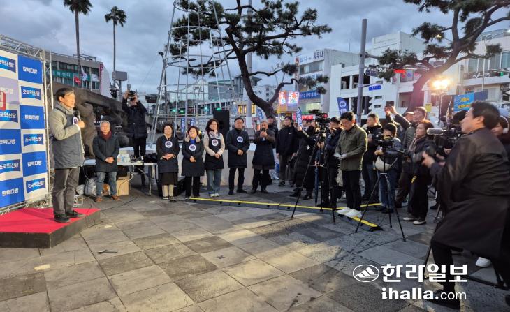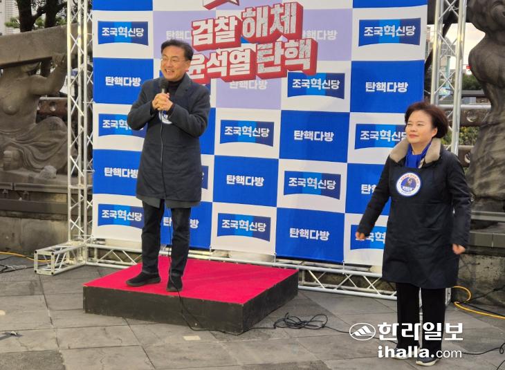 [한라일보] 조국혁신당 조국 대표가 29일 제주를 찾아 윤석열 대통령 탄핵을 위한 세몰이를 이어 갔다. 조국혁신당은 제주도당을 창당하며 2026년 지방선거 채비도 서두르고 있다.