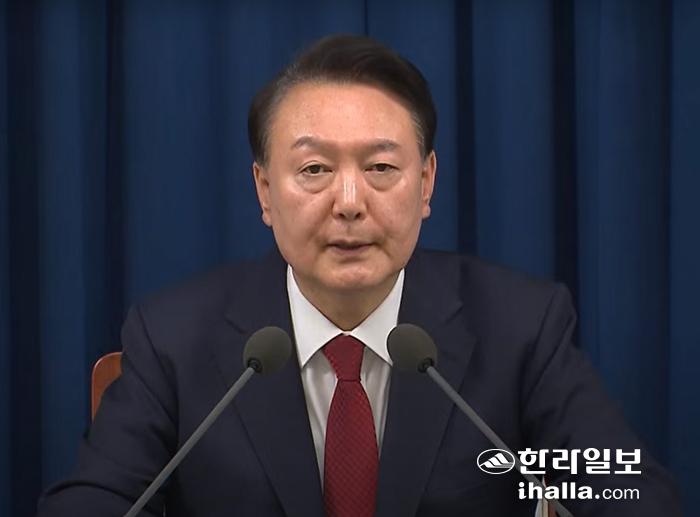 윤석열 대통령이 4일 새벽 용산 대통령실에서 비상계엄 선포 해제를 발표하고 있다.연합뉴스