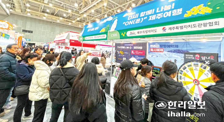 특히 홍보관에서는 여행시장의 실구매층인 주부층과 MZ세대 공략을 위해 연말연시를 맞아 탐나오 '다시! 함께! 나눔! 온(ON) 제주여행' 할인 프로모션과 한라산 눈꽃 버스 운영 등을 중점적으로 알렸다.