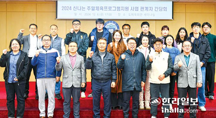 제주특별자치도체육회(회장 신진성)는 지난 6일 제주도체육회 세미나실에서 '2024 신나는 주말체육 프로그램 지원 사업'과 관련해 관계자를 대상으로 간담회를 개최했다.