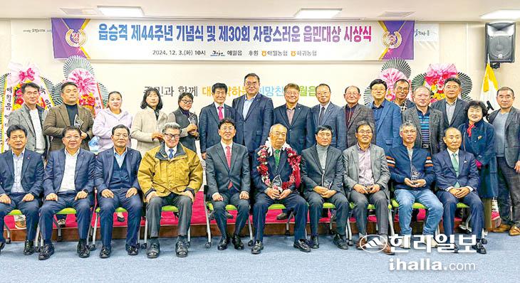 [한라일보] 제주시 애월읍(읍장 김기완)은 읍승격 44주년을 기념해 제30회 자랑스러운 읍민대상 8명의 수상자를 최종 선정하고 최근 애월읍사무소에서 시상식을 개최했다.