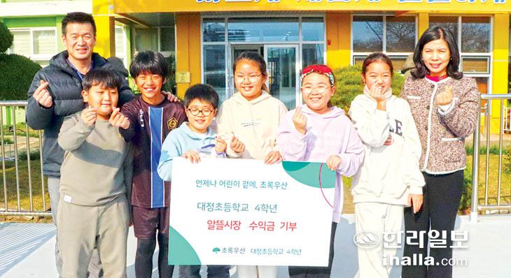 대정초등학교(교장 고경희) 4학년은 지난 5일 초록우산 제주지역본부(본부장 변정근)에 알뜰시장 수익금 9만4810원을 전달했다.
