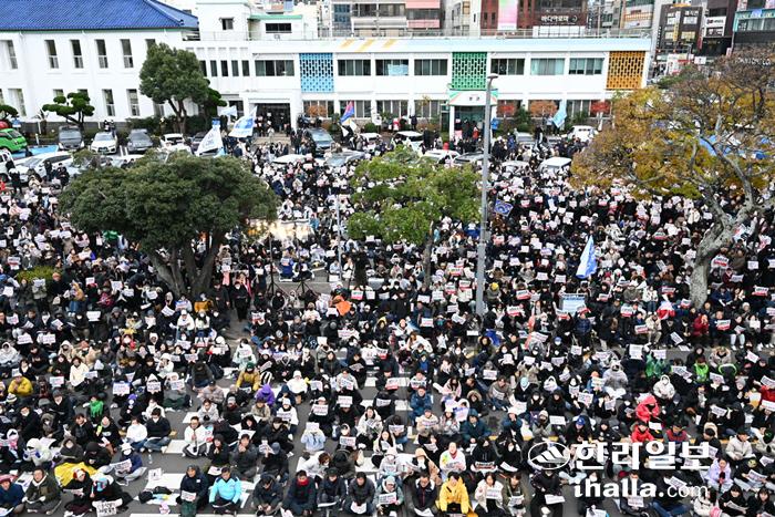 제주시청 주변 메운 시민들 "윤석열을 탄핵하라"