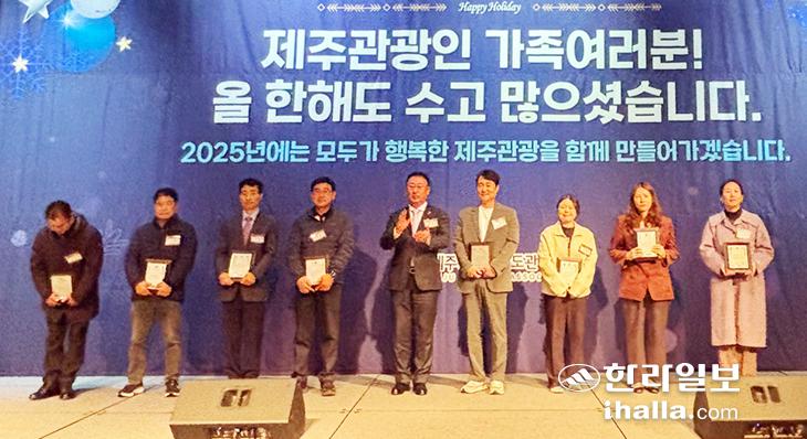 제주도와 제주도관광협회(회장 강동훈)는 지난 16일 열린 제주관광인의 밤 행사에서 '제주관광 미담 콘테스트'를 진행해 우수사례로 선정된 5명과 미담사례 행위자 5명에게 감사패를 전달했다.