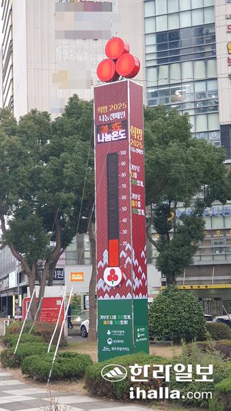 22일 제주사회복지공동모금회에 따르면 모금회는 지난 1일부터 제주시 노형오거리에 사랑의 온도탑을 설치하고 2025 희망나눔캠페인을 시작했다.