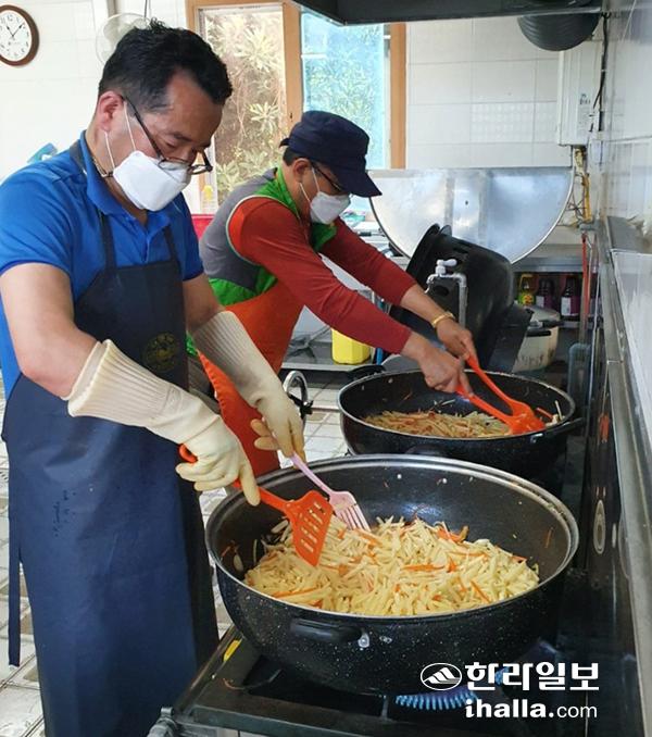 홍태욱씨는 지난 2002년부터 22년째 밑반찬 만들기, 배달 봉사 등을 해오며 지역사회에 귀감이 되고 있다. 사진은 밑반찬 만들기 봉사를 하고 있는 홍 씨. 김채현기자