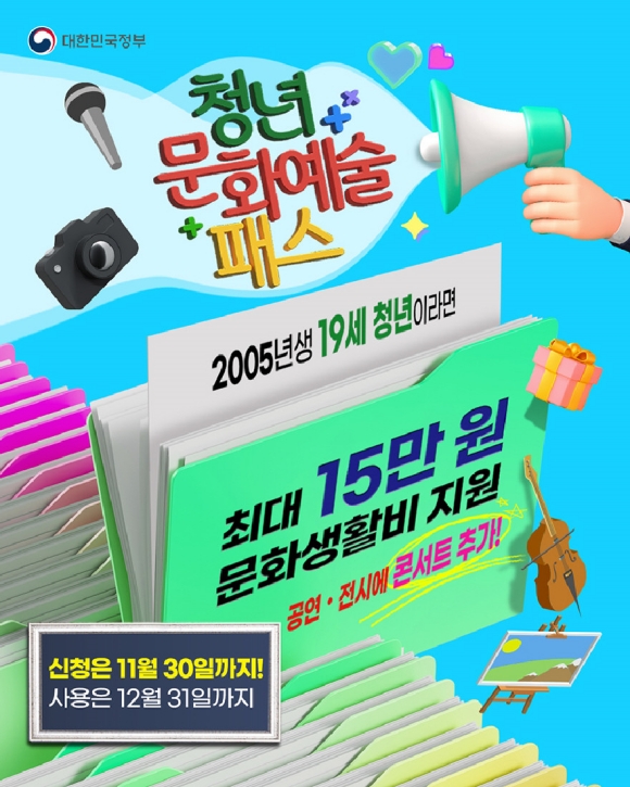 '청년 문화예술패스'는 문화체육관광부가 지난해 처음 시행한 사업이다. 문화예술 관람 수요가 높은 청년들에게 공연·전시 관람 기회를 제공한다는 게 핵심이다. 청년들의 생활비 부담을 낮추고 일상에서 문화를 누릴 수 있도록 하자는 취지도 담고 있다.