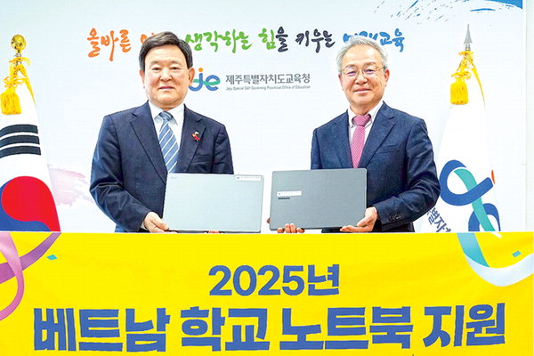 [한라일보] 제주특별자치도교육청은 베트남 교육 소외 도서지역에 있는 3개 학교에 노트북 40대(5200만원 상당)를 지원한다고 16일 밝혔다.
