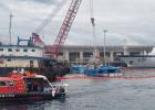 제주 서귀포 해상에서 전복된 서귀포 선적 근해연승어선 2066재성호(32t)가 16일 육상으로 인양됐다.