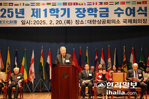 [한라일보] 부영그룹 이중근 회장은 20일 직접 사재를 출연해 설립한 우정교육문화재단을 통해 국내 대학에 재학 중인 외국인 유학생들에게 장학금을 지급했다.