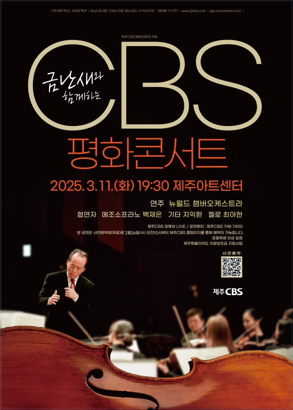 [한라일보] 세계적 지휘자 금난새가 제주의 봄을 여는 클래식 무대에 선다. 제주CBS가 창립 24주년을 맞아 오는 3월 11일 오후 7시 30분 제주아트센터에서 여는 '금난새와 함께하는 CBS평화콘서트'다.
